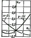 На рис. 2-11 в качестве примера приведены зависимости относительного изменения сопротивления от деформации для элементов из р и n -кремния, из которых видно, что рабочий диапазон деформации должен быть ограничен значениями ±0,1%.