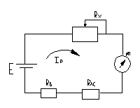 данная цепь состоит из источника питания Е, Rx – резистивный преобразователь, измерительный прибор ИП, RЛС – сопротивление линии связи, RБ – балансовое сопротивление, для того чтобы не было max токов резистивного преобразователя Rx изменяется ток Iр в цепи