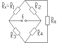 Ветви включающие Rн и E наз. диагоналями моста. E- диагональ питания, включающая Rн выходная или измерительная диагональ. При R1 относящемся к R2 как R3 к R4, то к в измерительной диагонали равен 0 и мост находится в состоянии баланса. Чаще всего мост бывает симметричным, существует 2 вида симметрии: 1. относительно измерительной диагонали R1= R2; R3= R4. 2. относительно диагонали питания R1= R3; R2= R4. при линейной характеристики Rx и высоком сопротивлении Rн схема имеет линейную характеристику.
