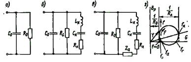 При частотах, которые значительно меньше f К, ток в цепи возбуждающих электродов (рис. 2-19, а) мал и определяется в основном межэлектродной емкостью С 0 и сопротивлением изоляции между электродами R 0.