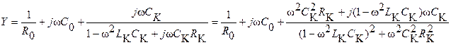 Для идеального пьезорезонатора (R 0 = ¥, R К = 0) проводимость бесконечно возрастает при условии 1 – w 2L K C K = 0, т.е. при частоте w R =