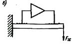 В дифференциальном преобразователе с переменным зазором (см. рис. 2-24, д), силы, действующие между парами пластин, направлены встречно и компенсируют друг друга. Однако полная компенсация возможна только, если входное сопротивление цепи, включенной в диагональ моста, бесконечно велико и рабочие емкости ничем не шунтируются. В этом случае уменьшение или увеличение зазора вызывает пропорциональное уменьшение или увеличение напряжения между соответствующими пластинами; сила, действующая между ними, остается неизменной, т.е. разность сил равна нулю независимо от перемещения средней пластины.