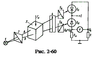 На рис. 2-60 показан принцип действия пьезооптического преобразователя механических напряжений, основанного на явлении фотоупругости.