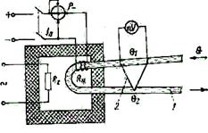 Калориметрические ваттметры обычно работают в диатермическом режиме, при котором мощность определяется по изменению температуры калориметрической среды (рис. 2-63). Мощность Px, потребляемая нагрузкой Rx, определяется по разности температур жидкости (теплоносителя) 1 на выходе и входе калориметра, которая измеряется с помощью термобатареи 2 и милливольтметра при