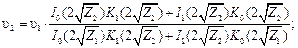 mr 1 = 18,9×0,038 = 0,719, mr¢ 2 = 18,9×0,1025 = l,94, где теплоотдача с торца приближенно учтена увеличением r 2 на половину толщины ребра: r ¢2 = r 2 + d/2 = 0,10 + 0,0025 = 0,1025 м. Подставляя полученные значения mr 1 и mr ¢2 в выражение для избыточной температуры конца ребра, получаем: