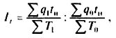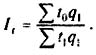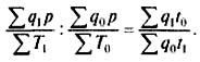 В тех случаях, когда в обоих сравниваемых периодах производится продукция одинакового состава, используют в качестве весов индекса величину трудоемкости производства единицы продукции в базисном периоде. Тогда после элементарных преобразовании формулы (16.8) с учетом, что q0t0 = T0 получаем