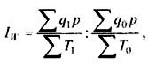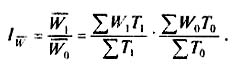 Преобразуем формулу (16.9) натурального индекса производительности труда, для чего объем представим как произведение выработки в единит времени (W) на общие затраты труда (рабочего времени - T); т. е. q = W • Т