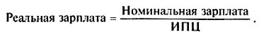 Реальная заработная плата - предоставляет собой показатель, характеризующий объем товаров и услуг, которые можно приобрести на заработную плату в текущем периоде. Исчисляется путем деления номинальной заработной платы текущего периода (без учета налогов и других удержании) на индекс потребительских цен (ИПЦ):