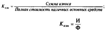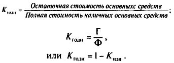Для определения степени износа и годности основных фондов рассчитываются коэффициенты износа и годности (по состоянию как на начало, так и на конец года):