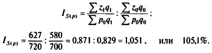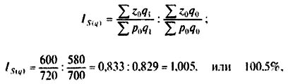 Этот индекс испытывает на себе не только влияние конкретных цен, но и структуры продукции. Чтобы изучить структурные особенности цен, исчисляется индекс структурных сдвигов.