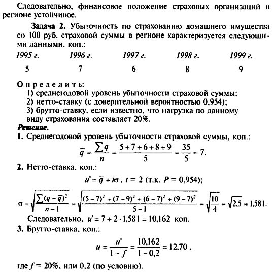 Брутто-ставка (u) состоит из нетто-ставки (основной части тарифа, предназначенной для создания фонда на выплату страхового возмещения) и нагрузки к ней,