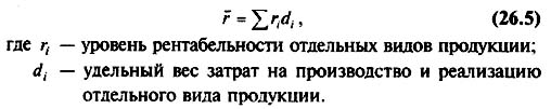 Средний уровень рентабельности продукции можно представить как сумму произведений рентабельности отдельных видов продукции и структуры затрат на реализованную продукцию: