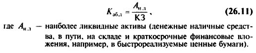 Коэффициент абсолютной ликвидности (Kаб.л.) показывает, какая часть краткосрочных обязательств может быть погашена немедленно: