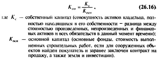 Показатель инвестирования - отношение собственного капитала к основному капиталу.