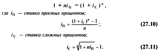Записав равенство, найдем ставку простых процентов, эквивалентную ставке сложных процентов: