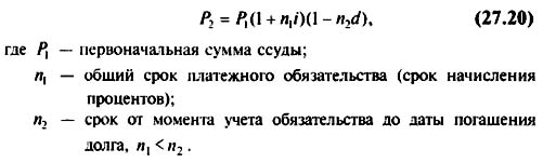 Операция начисления простых процентов и дисконтирование по учетной ставке могут совмещаться, например, при учете платежного обязательства, предусматривающего начисление простых процентов.