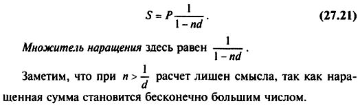 Выше рассматривалось наращение по сложной ставке процентов. Иногда наращение достигается и с помощью сложной учетной ставки. Из формулы (17.22) следует;