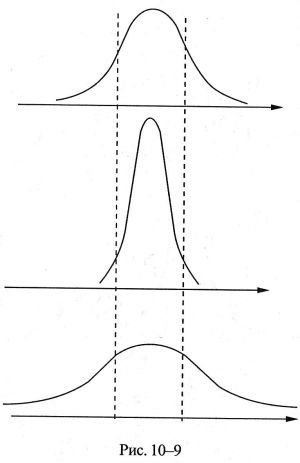 Графически закон нормального распределения выглядит так, как изображено на рисунке 10-8. Для тех, кто плохо воспринимает математические формулы и графики поясним график.