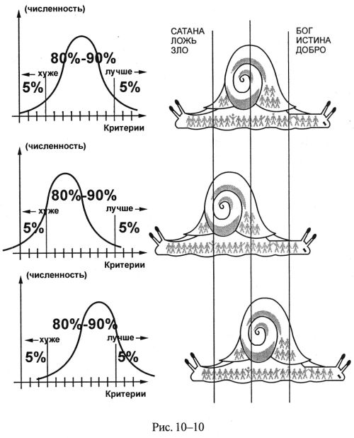 А пока отметим, что знание и умелое применение закона нормального распределения позволит впредь думающим читателям книги правильно оценивать тенденции в жизни нашего общества, вскрывать причины тенденций и, что самое главное, на базе сделанного анализа понимать и знать что надо делать, чтобы «улитка» двигалась в сторону добра.