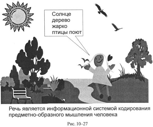 Итак, человек видит Солнце, слышит пение птиц, ощущает запах хвойного леса и вкус холодной воды из родника … Чтобы всё это не «перепутать между собой, человек каждое явление наделяет чёткой мерой, которая соответствует только своему соответствующему явлению. Такой «мерой» являются слова (рис. 10-27).