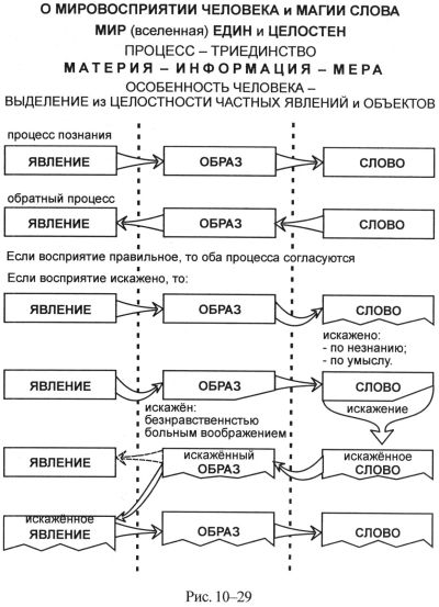 На рисунке 10-29 вы видите схематическое представление процесса восприятия человеком окружающего мира в сопоставлении с процессом триединства.