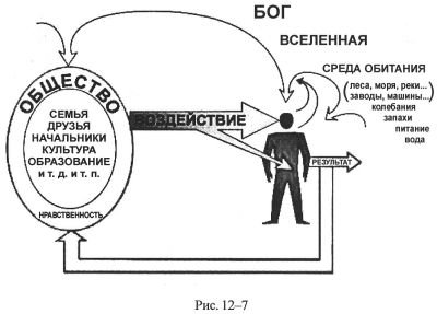 Объект управления» здесь – ребёнок. Субъект управления – родители. Управляющее воздействие – как чисто информационное, так и механическое: прутиком, ремнём, а у некоторых, что под руку попадётся. Результатом управления окажется вся будущая жизнь такого ребёнка, а потом и взрослого человека (см. рис. 12-1 и 12-7).