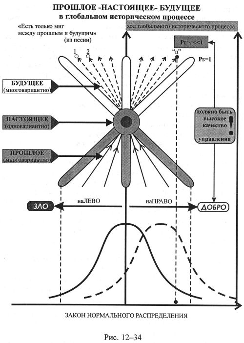 «Прошлое» – всегда многовариантно. Лев Толстой в «Эпилоге-2» романа «Война и Мир» писал о том, что всю историю до мельчайших подробностей описать невозможно. Пишут в основном о знаменитых людях, значительных событиях. А то, что в это время миллионы людей трудятся, растят детей, об этом в лучшем случае историки и писатели молвят один-два предложения. Да и подробно описать жизнь всего множества людей невозможно в принципе. Поэтому существует множество вариантов изложения исторических событий. Памятуя о существовании 6-ти приоритетов обобщённых средств управления (ОСУ), можно смело утверждать о субъективности всех вариантов изложения исторических событий. Степень субъективности зависит от 1 приоритета ОСУ. С позиции христианства – одна история. С позиций ислама – другая история. С позиций буддизма – третья история. Фоменко и Носовский изложили свою версию истории. И есть ещё много всяких вариантов и взглядов на ход истории. Но ни в одном из этих вариантов не присутствует подход к изложению исторических событий с точки зрения управления глобальным историческим процессом. И хотя у Л.Н. Толстого и у А.Д. Петухова присутствует божественная составляющая в управлении ходом истории, но целостный и развёрнутый взгляд на управление как социальными, так и НАДсоциальными процессами дан только в КОБе и подробно изложен в ДОТУ.