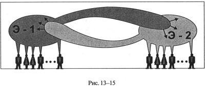 – Взаимно-вложенными (один входит в другой и наоборот). Такие эгрегоры отличаются друг от друга своими третьестепенными, четверостепенными и т.д. параметрами (рис. 13-15).