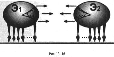 – Быть взаимно антагонистическими, то есть неприемлемыми друг другу. Это происходит тогда, когда эгрегоры отличаются друг от друга по основным параметрам, определяющим их суть, их главное содержание (рис. 13-16).