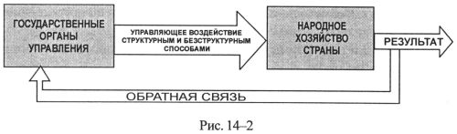 Вновь (как впрочем, и всегда) необходимо видеть схему управления: объект управления, субъект управления, управляющее воздействие, обратная связь… В нашем случае объект – народное хозяйство, субъект – государственные органы управления (рис. 14-2).