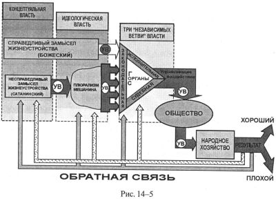Всё это хорошо видно из рисунка 14-5, на котором изображена развёрнутая замкнутая схема управления народным хозяйством страны.