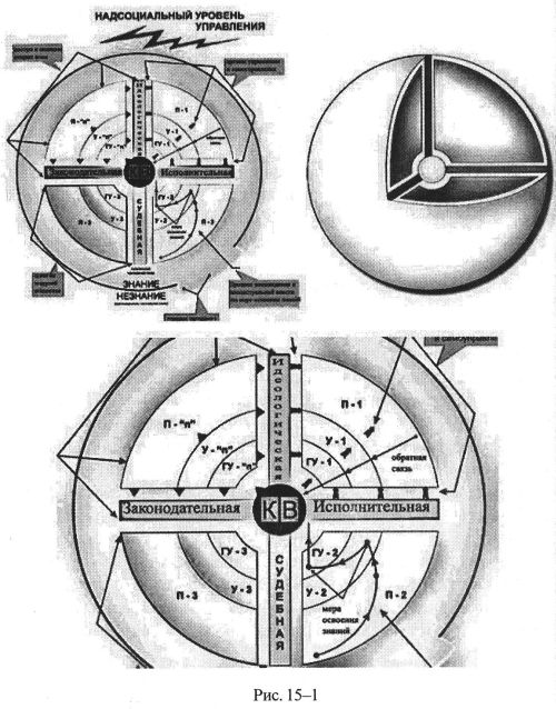 Тогда «четыре спицы», вращаясь вокруг центра шара по произвольным траекториям «обслуживает» все сегменты сфер жизнедеятельности общества и идеологически, и законами, и исполнительной властью, и судебной властью.