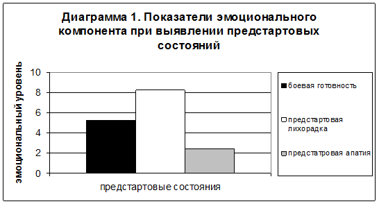 Наличие такой связи указывает на то, что предстартовая лихорадка влияет на проявления нервной системы таким образом, при котором наблюдаются признаки психомоторного перевозбуждения, теряется контроль спортсменом за своими двигательными действиями, особенно если речь идет о темпо-ритмовых движениях. Эмоциональный уровень, воздействуя на нервную систему, выводит процессы возбуждения на повышенный, неконтролируемый уровень.