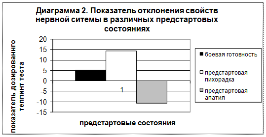 Выявление взаимосвязи между предстартовым состоянием боевой готовности и свойствами нервной системы, отражено на диаграмме 3.