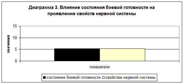 Состояние боевой готовности не влияет на проявление свойств нервной системы. При расчете корреляции мы получили недостоверный показатель: r= - 0,011 при р > 0,05