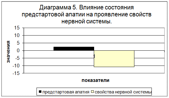 Выявление взаимосвязи между предстартовым состоянием апатии и свойствами нервной системы, отражено на диаграмме 5.