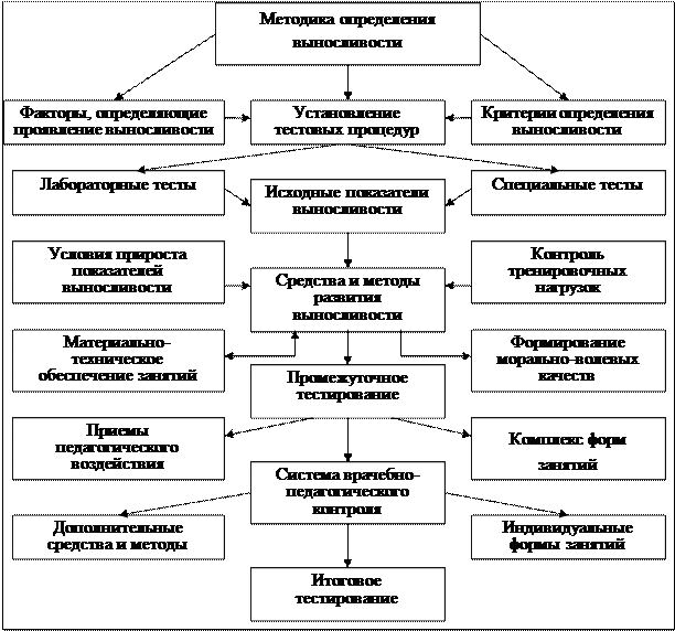 В ходе теоретических и экспериментальных исследований нами была разработана примерная модель методики определения выносливости спортсменов, которая, в общем, может быть применена и в сфере массовой физической культуры (рис. 1).