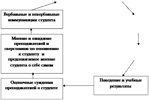 Каждое оценочное суждение преподавателя студент сложным путем принимает, интерпретирует и обрабатывает. Образ себя и самопонимание во многом обусловливают поведение студента и его успехи в учебе, которые в свою очередь становятся предметом оценки других лиц, и в основном преподавателя.