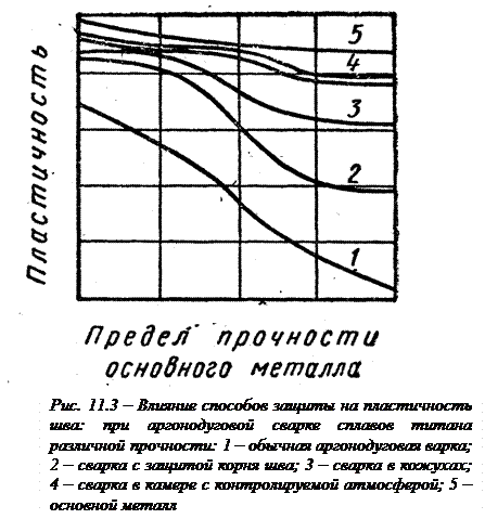 Критерием оценки степени загрязнения металла шва азотом и кислородом служит твердость металла шва. При хорошей защите твердость металла шва не превосходит исходной твердости основного металла. Иногда для получения более чистой инертной атмосферы перед сваркой изделия в камерах сваривают образцы из активных металлов (титана, циркония).