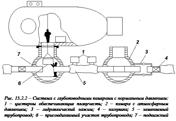 На рис. 15.2.2 – представлен общий вид системы с использованием сварочно-монтажных камер с нормальным атмосферным давлением.