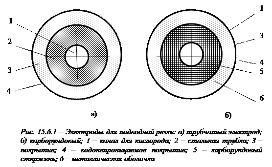 Для ручной дуговой сварки под водой используют электроды диаметром 4-6 мм (рис.15.4.5.1) из сварочной проволоки марок Св-08, Св-08А, Св-08ГА, Св-08Г2, а для полуавтоматической сварки – проволоки марок Св-08Г2С, ППС-АН1. Наибольшее применение получили электроды марок ЭПС-5 и ЭПС-52, имеющие в составе покрытия ферросплавы, что улучшает химический состав и механические свойства металла шва. Водонепроницаемость покрытия достигается пропиткой такими составами, как парафин, раствор целлулоида в ацетоне, раствор синтетических смол в дихлорэтане, нитролаке и др.