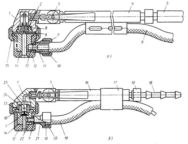 На рис. 15.6.2 представлены электродержатели для электрокислородной резки: а – ЭКД-4; ЭКД-4-60 [8].
