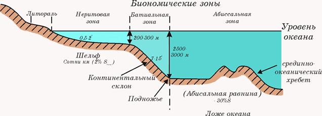 Состав и строение огромной массы обитающих в морях растительных и животных организмов в значительной мере зависят от среды обитания, т. е. от таких факторов, как глубина моря, температура, соленость, давление, глубина проникновения света, динамика морской воды и т.д. Даже незначительное, изменение хотя бы одного из этих факторов часто приводит к массовой гибели животных и растений, населяющих участок морского бассейна. Этим и объясняется тот факт, что к определенным областям моря приурочены приспособившиеся к обитанию в них сообщества (биоценозы) животных и растений. Весь органический мир морских бассейнов подразделяется на три основные группы: бентос, планктон и нектон.