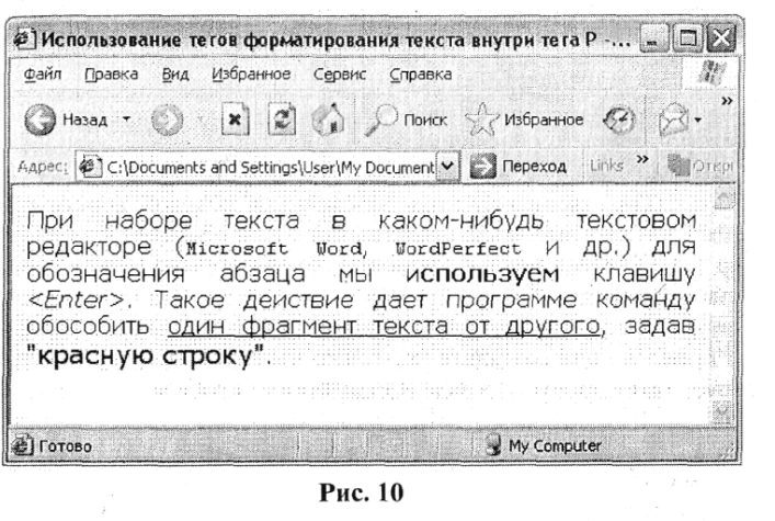 Задание № 10. Использование тегов форматирования текста внутри тега <Р>
