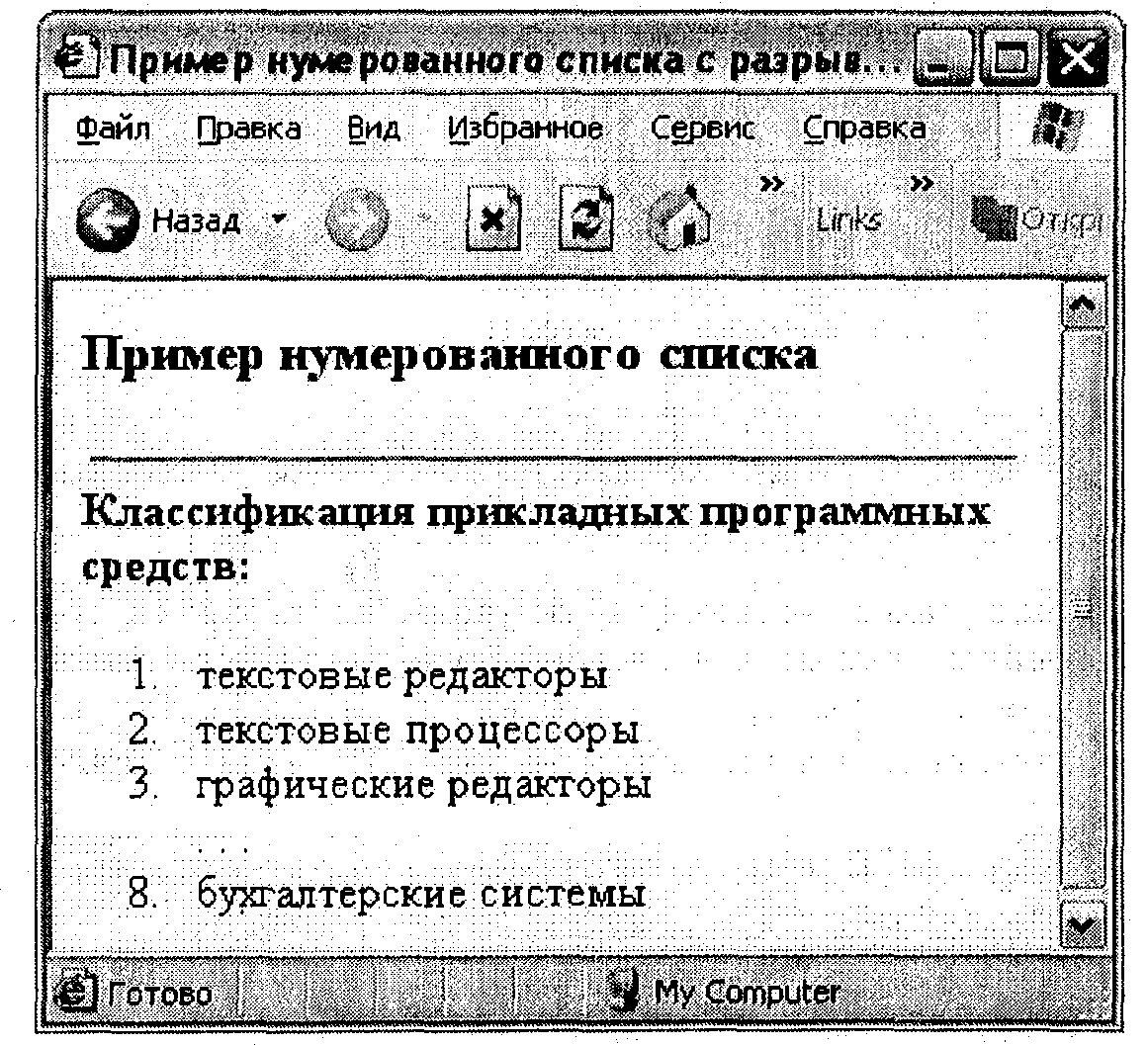 < TITLE >Пример нумерованного списка с разрывом последовательности </TITLE>