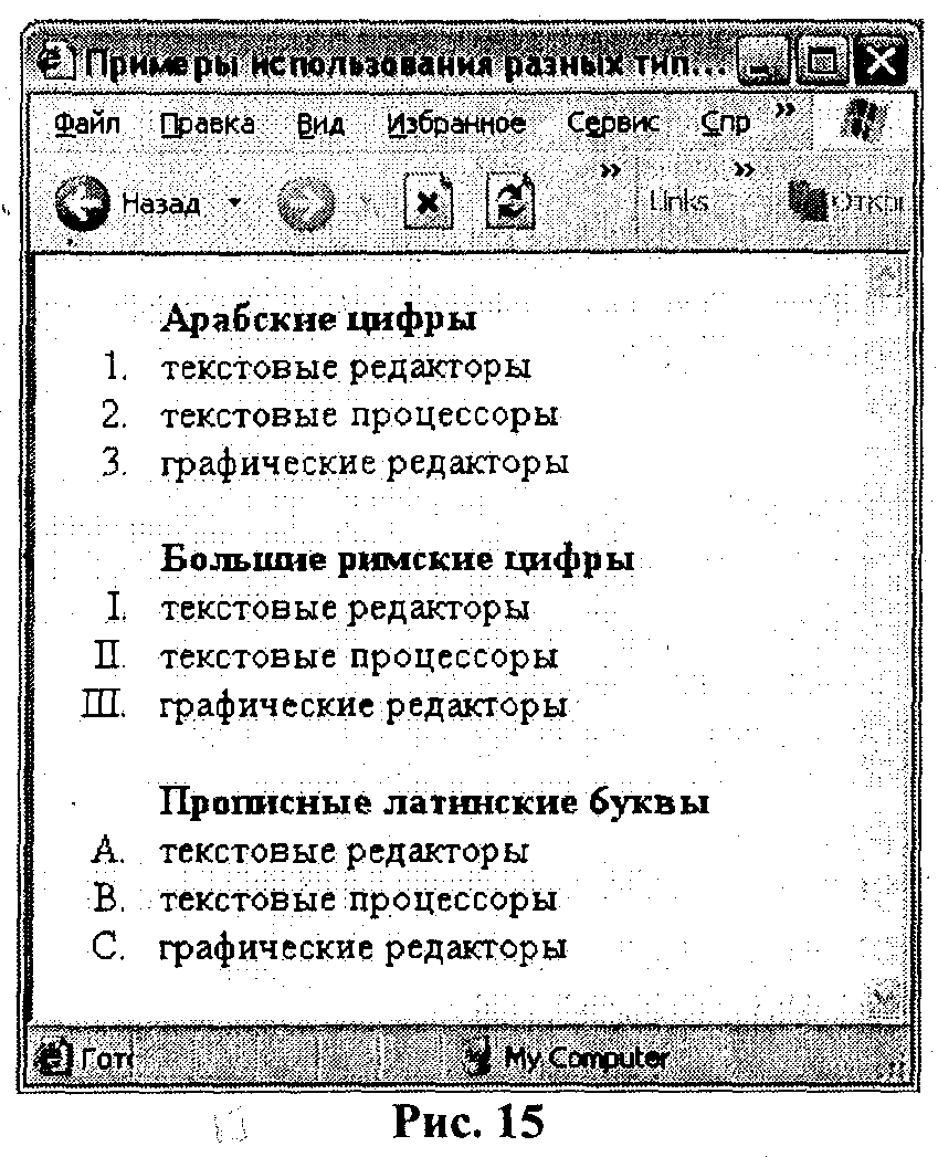 <TITLE>Примеры использования разных типов нумерованного списка</TITLE >