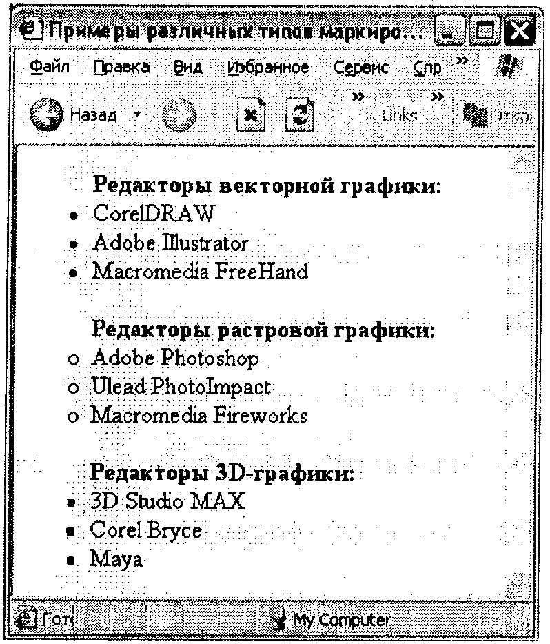 <TITLE>Примеры различных типов маркированного списка </TITLE>