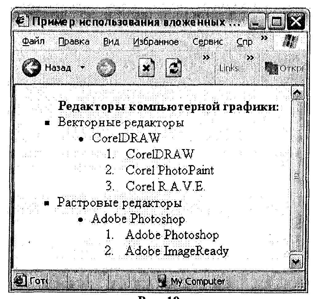 <TITLE>Пример использования вложенных списков </TITLE>