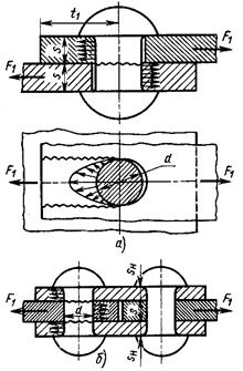 Аналогично получаются подобные соотношения параметров для других типов швов. Зная размеры заклёпочного вала, надо проверить заклёпки на срез