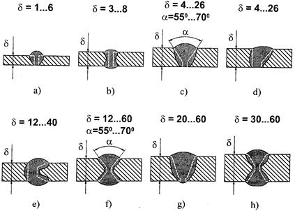 Рис. 4.1 Разделка кромокв стыковых сварных соединениях:
